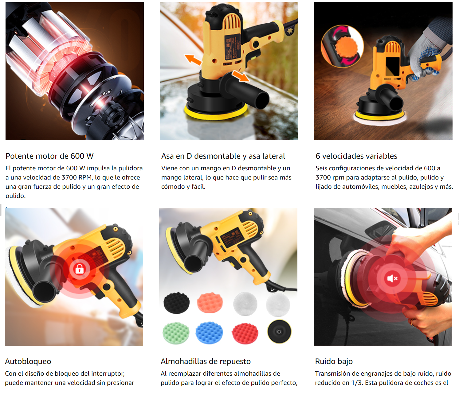 Transforma cualquier superficie con la potencia y precisión de la TurboShine Pulidora Eléctrica. Diseñada para ofrecerte resultados impecables en pulido y encerado, esta herramienta innovadora es tu compañera perfecta para el cuidado de automóviles, pisos, muebles y más.