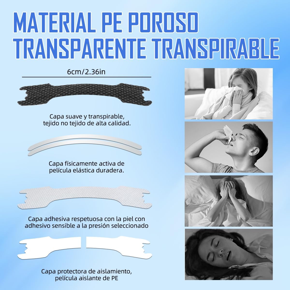 Estas tiras están diseñadas para dilatar suavemente las fosas nasales, permitiendo un flujo de aire más eficiente mientras duermes. ¡Son cómodas, efectivas y fáciles de usar! 🛏️
